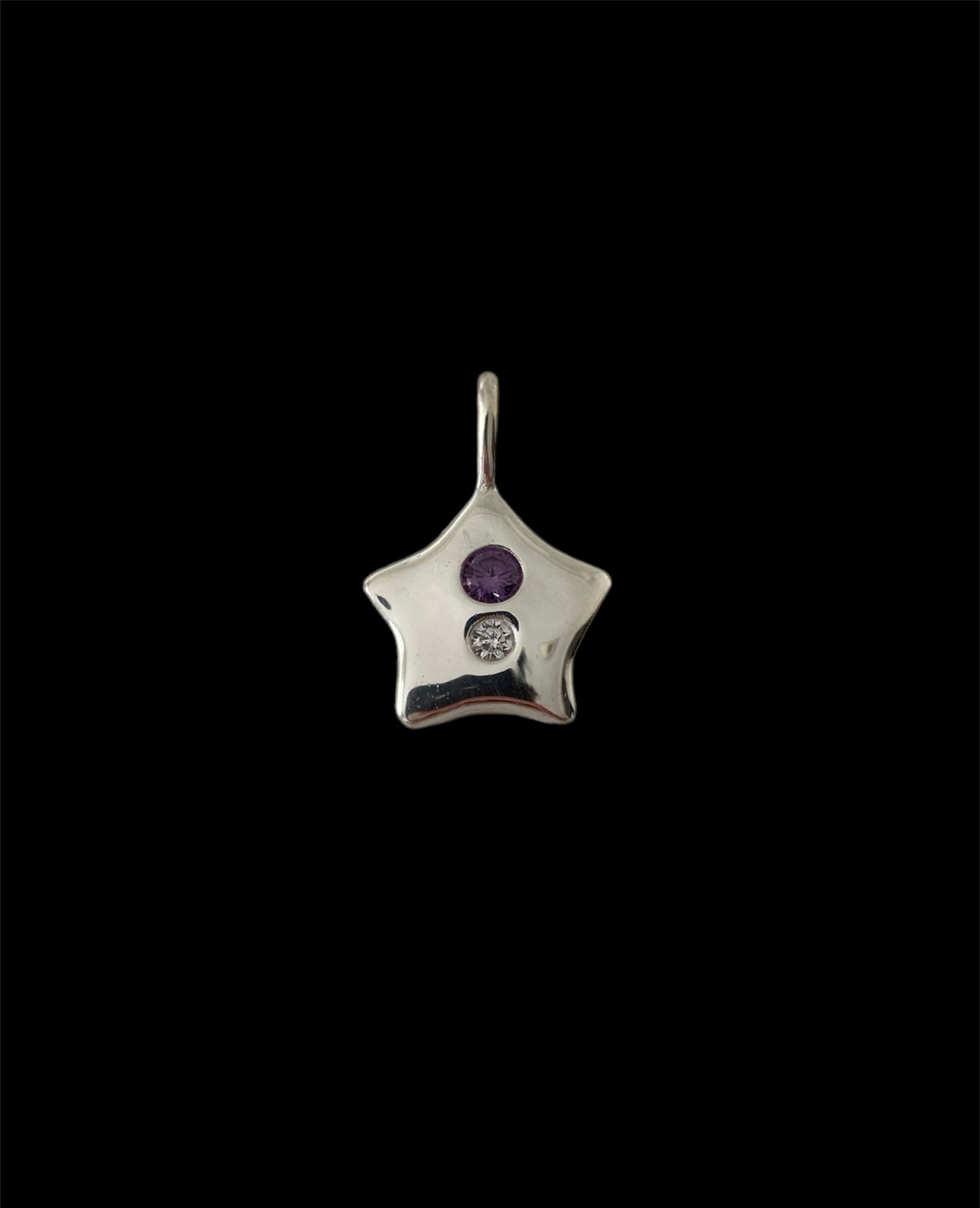 My classic chunky star pendant set with a lab grown amethyst coloured gemstone and a white cubic zirconia 🌟