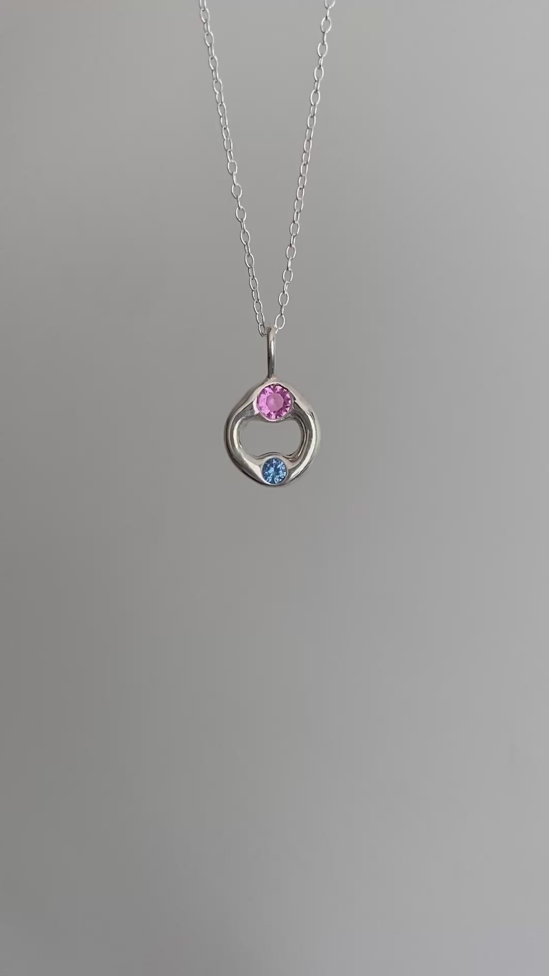 a customer told me this looks like a pop tab and I haven’t looked back since !! super fun addition to your neck stack 💖 set with lab grown gemstones including a pink sapphire