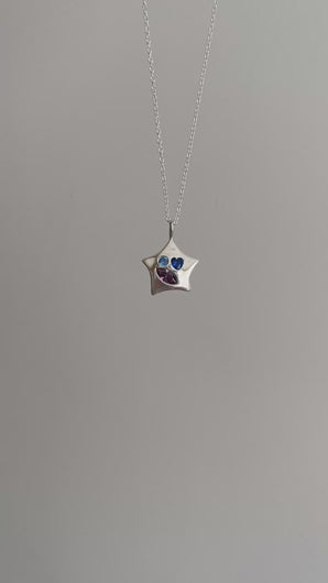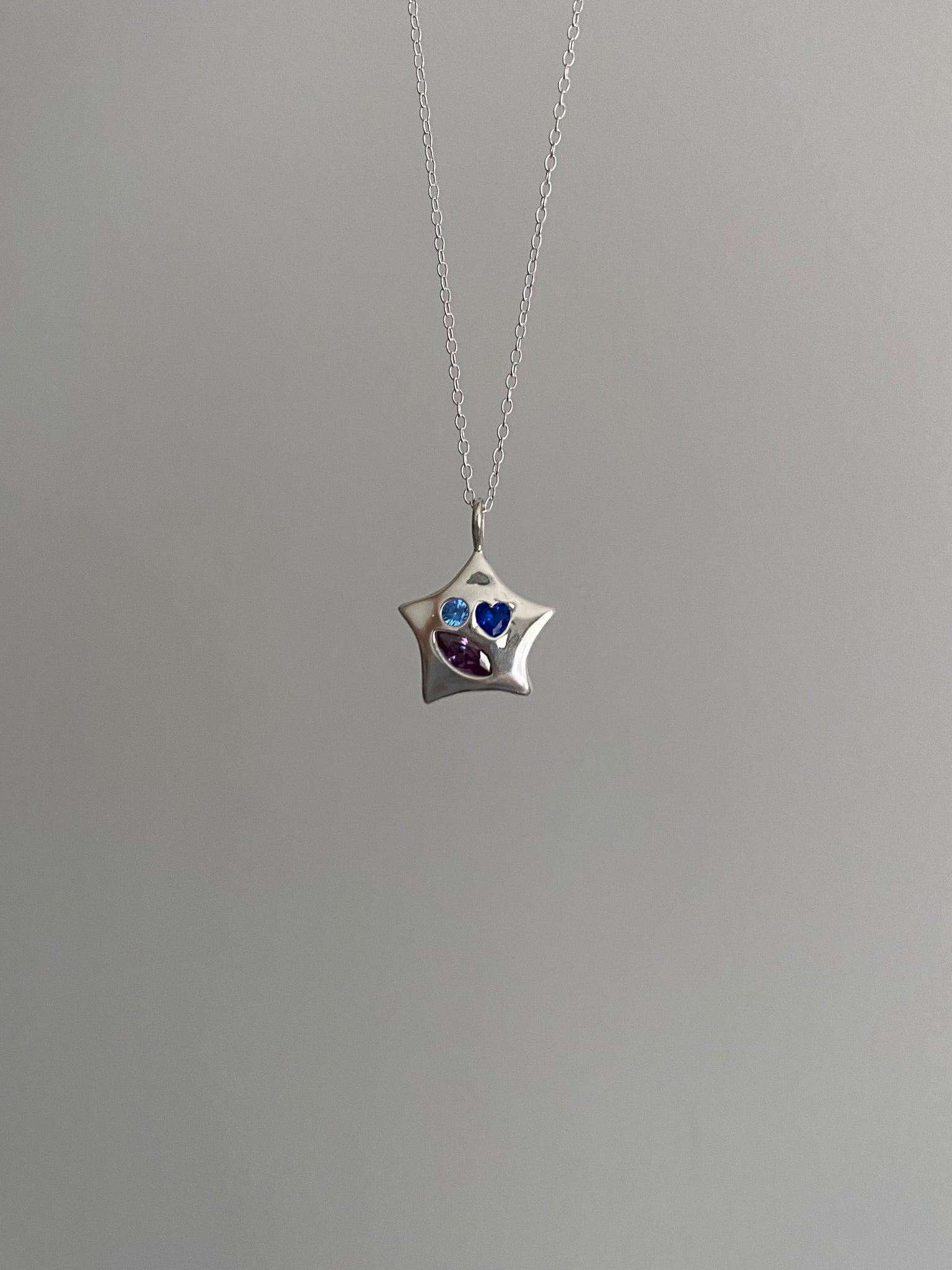 my classic bejewelled star pendant with a lab grown gemstones including a lab grown blue spinel heart