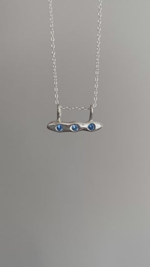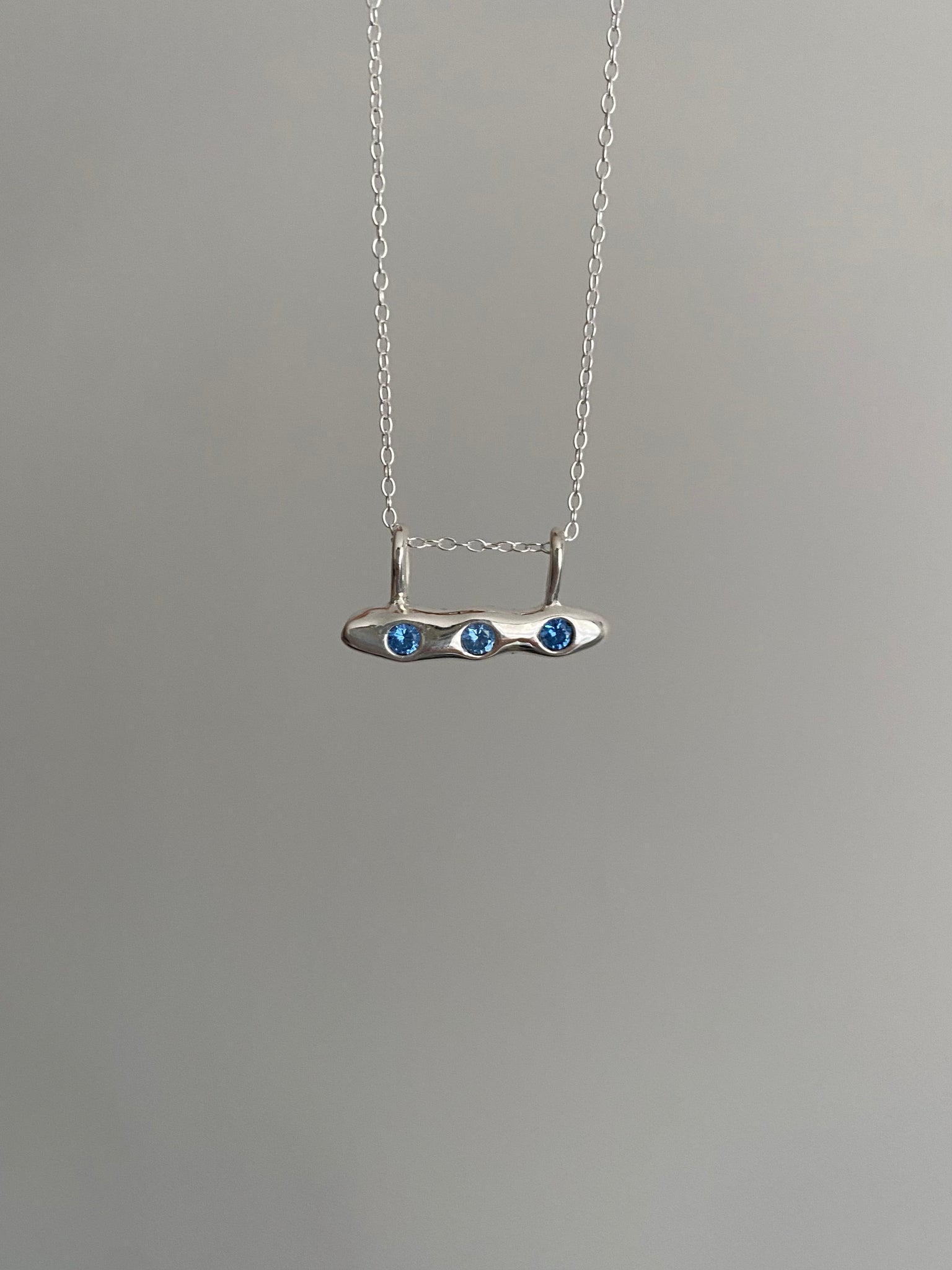horizontal blue peas in a pod, set with blue lab grown gemstones from japan 🫛 super unique and perfect to dress up your neck stack