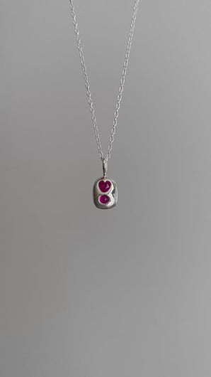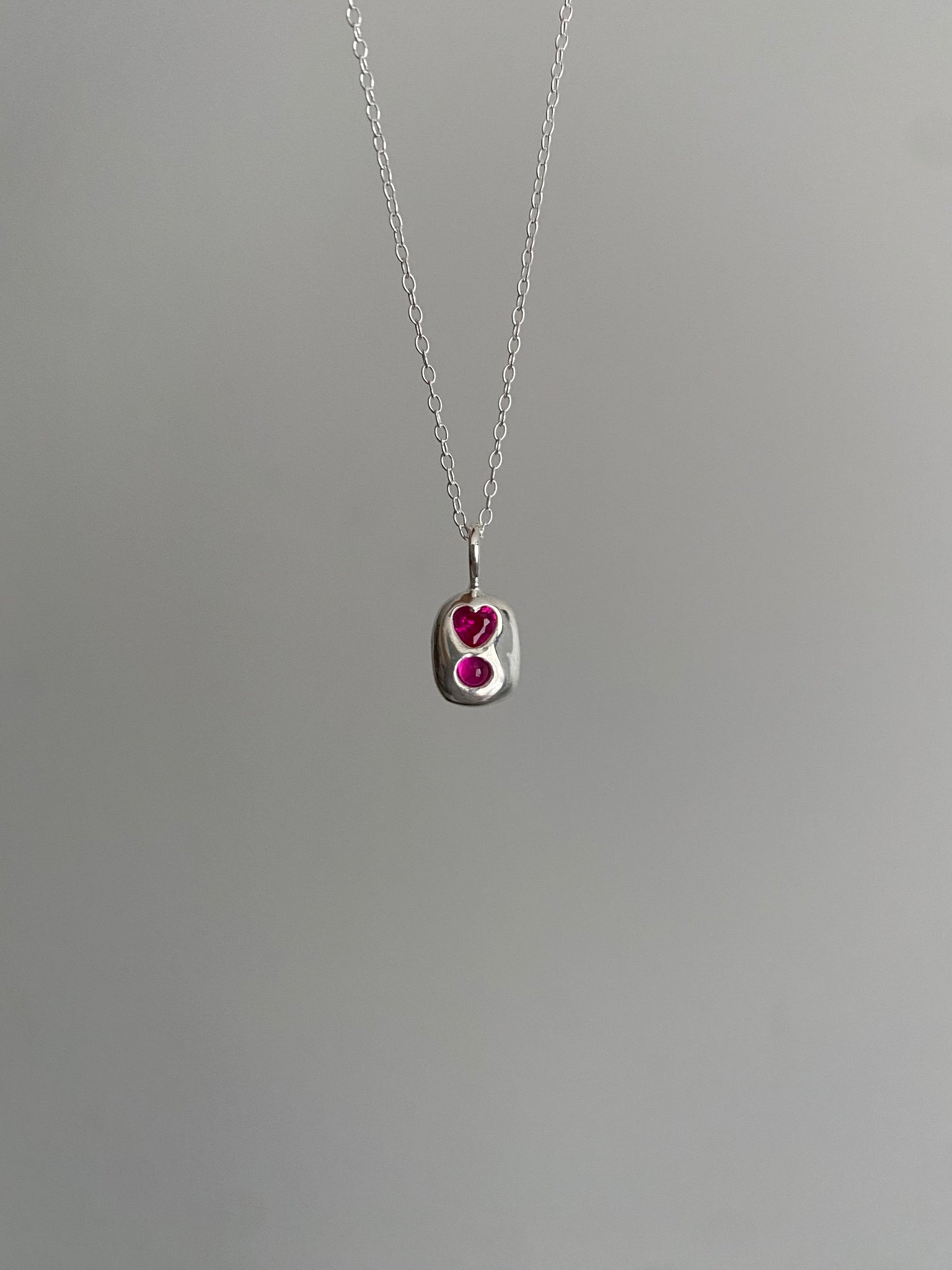 cutest chubby tab set with a lab grown ruby heart gemstone and a lab grown ruby round cabochon