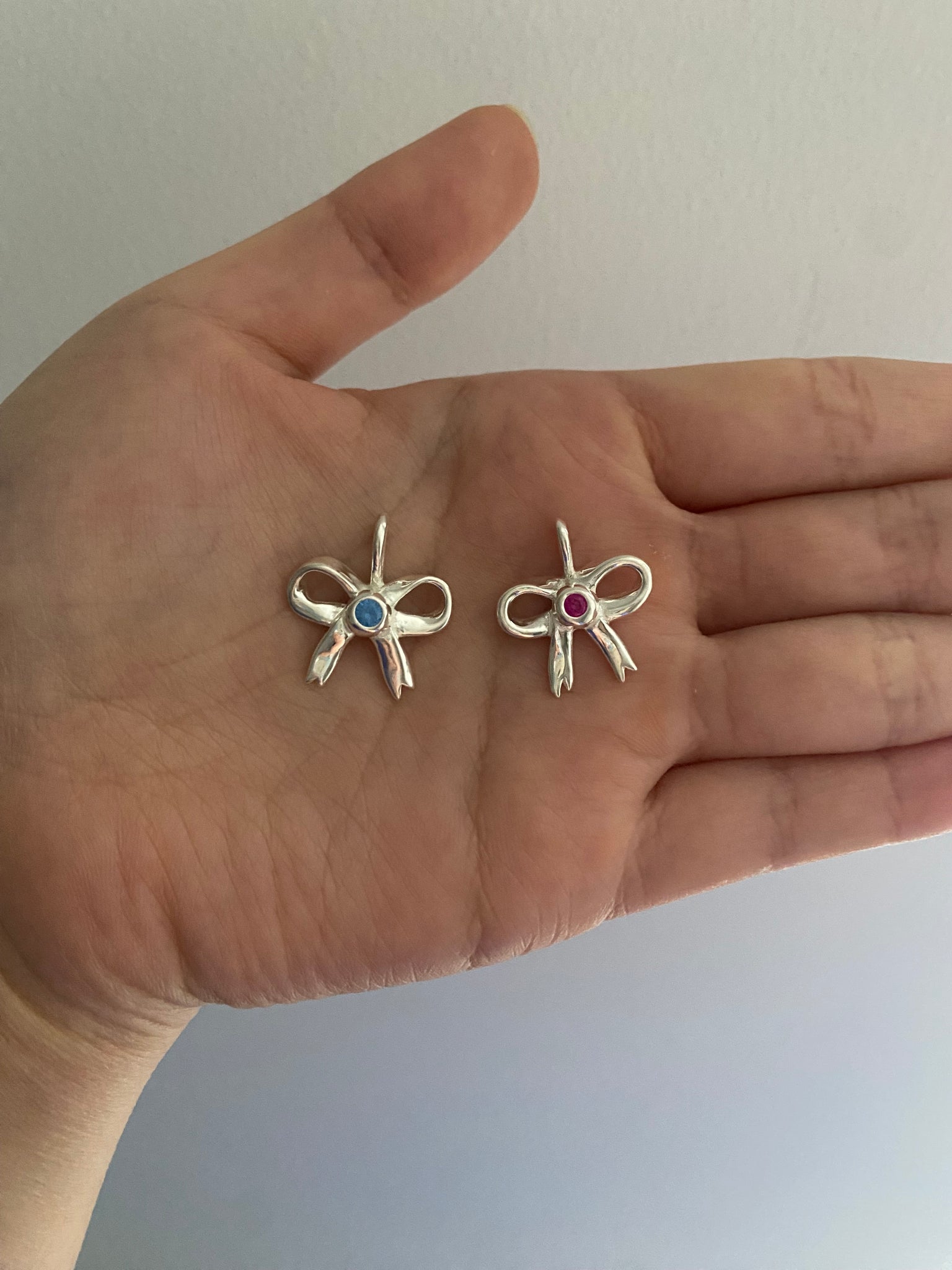 sweetest chunkiest bow set with a lab grown round ruby gemstone