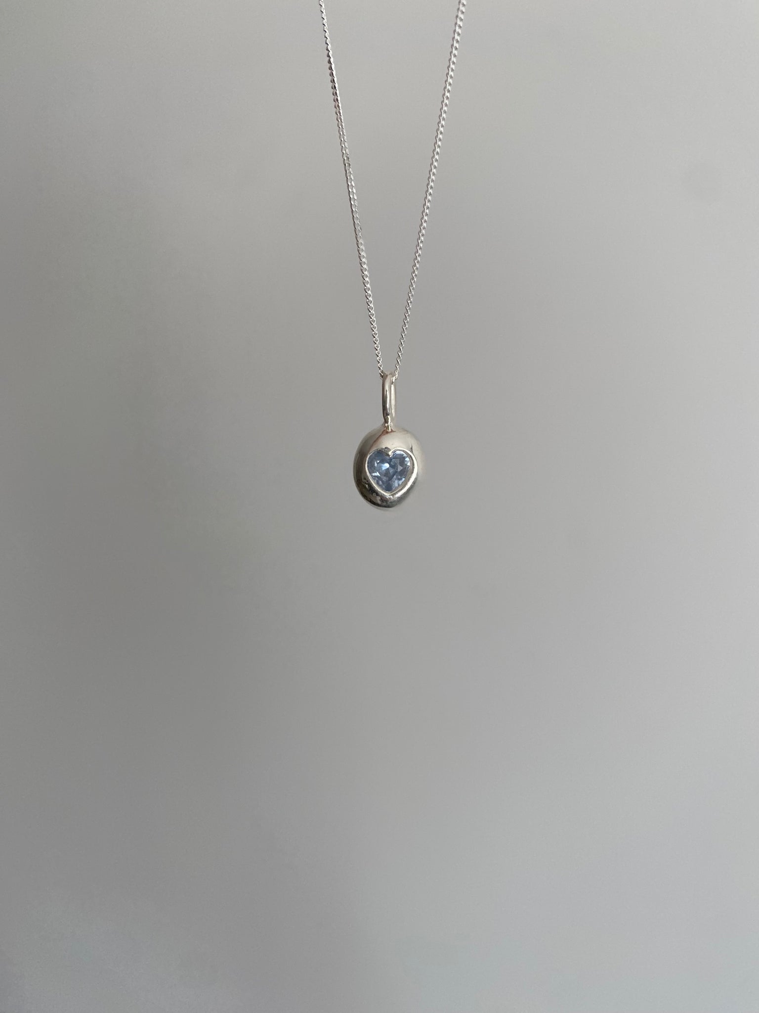 chubby blue heart pendant with a cloudy blue lab grown spinel heart gemstone ☁️
