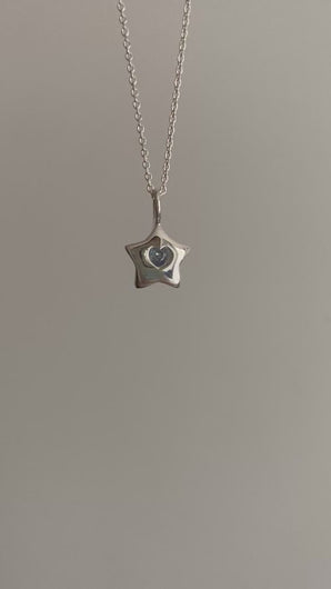 sterling silver and lab grown heart shaped cloudy blue spinel