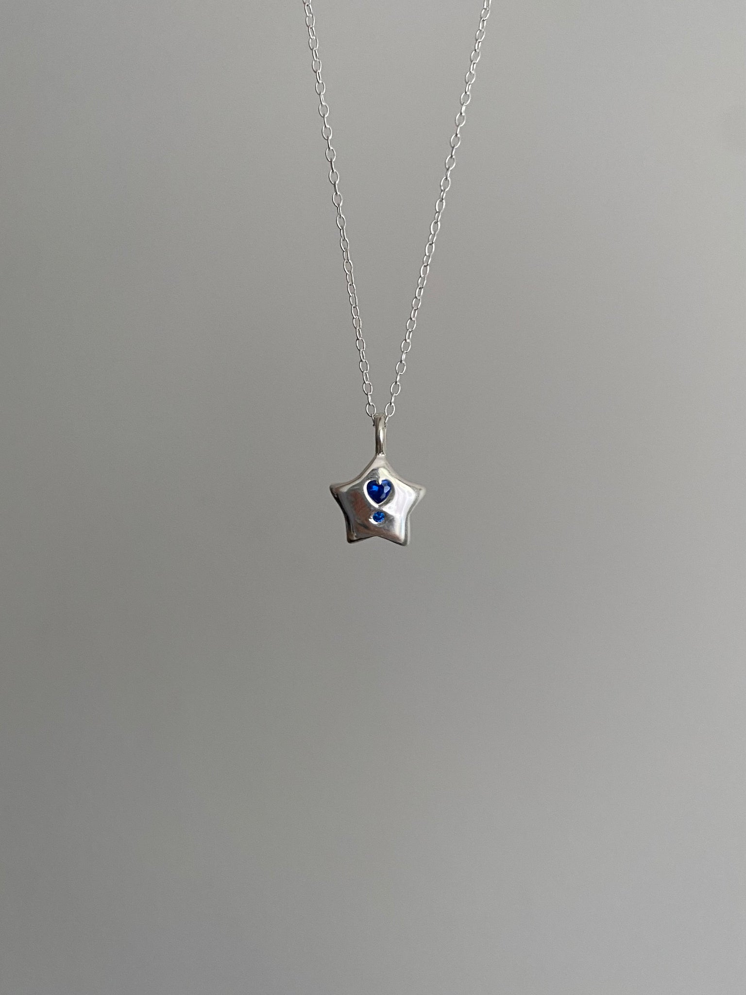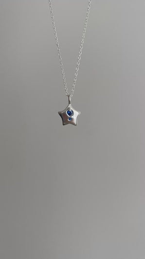 the sweetest little star pendant set with two lab grown blue spinel gemstones