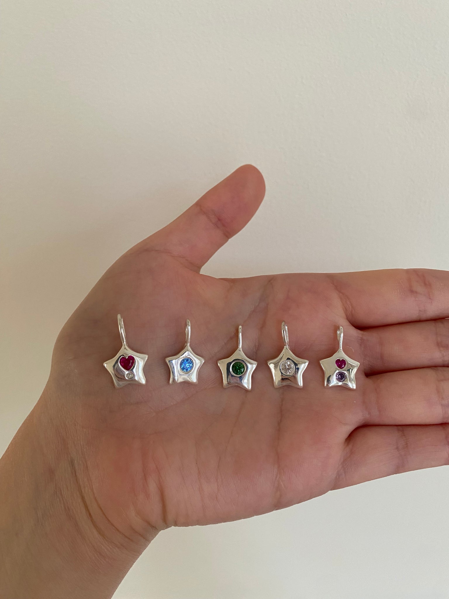 daintiest star pendant in the world! perfect for an every day stack, set with a lab grown ruby heart lab grown gemstone and a lab grown white round gemstone
