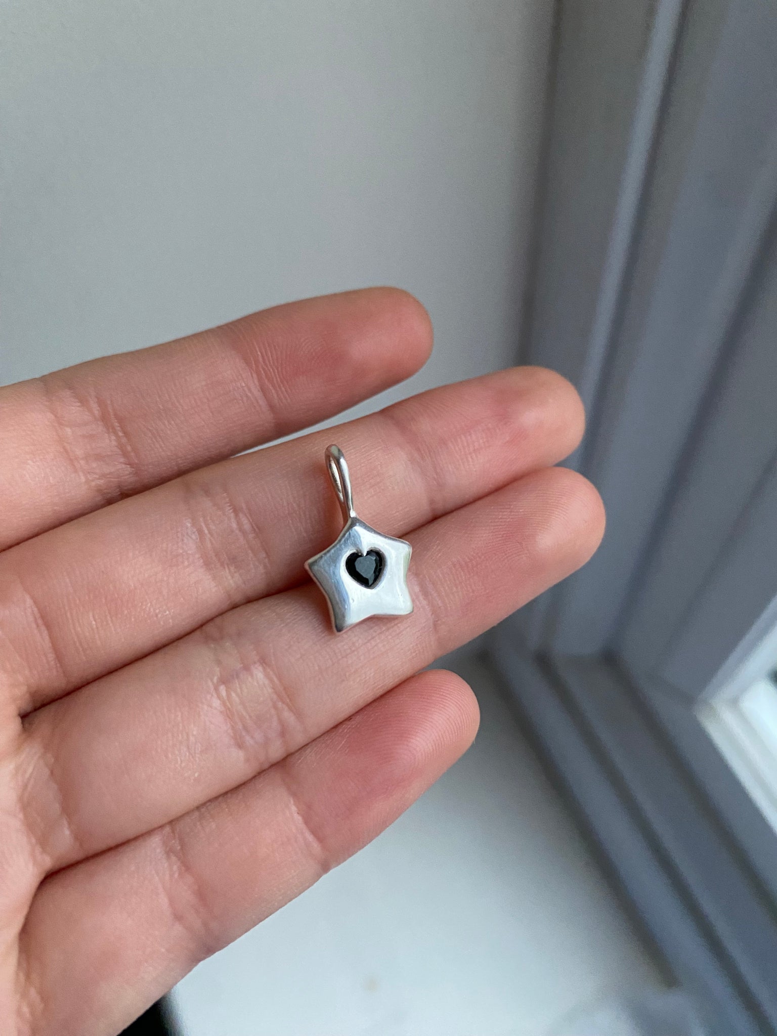 This cutie is discounted as it has a scratch on the black heart stone. I’ve tried to take a picture of the scratch in the second pic, but it’s quite hard to photograph! Scratch is not deep, and barely visible 💓