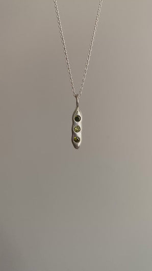 I finally made my peas in a pod with green gemstones! This cutie is sterling silver and set with three lab grown peridot gemstones