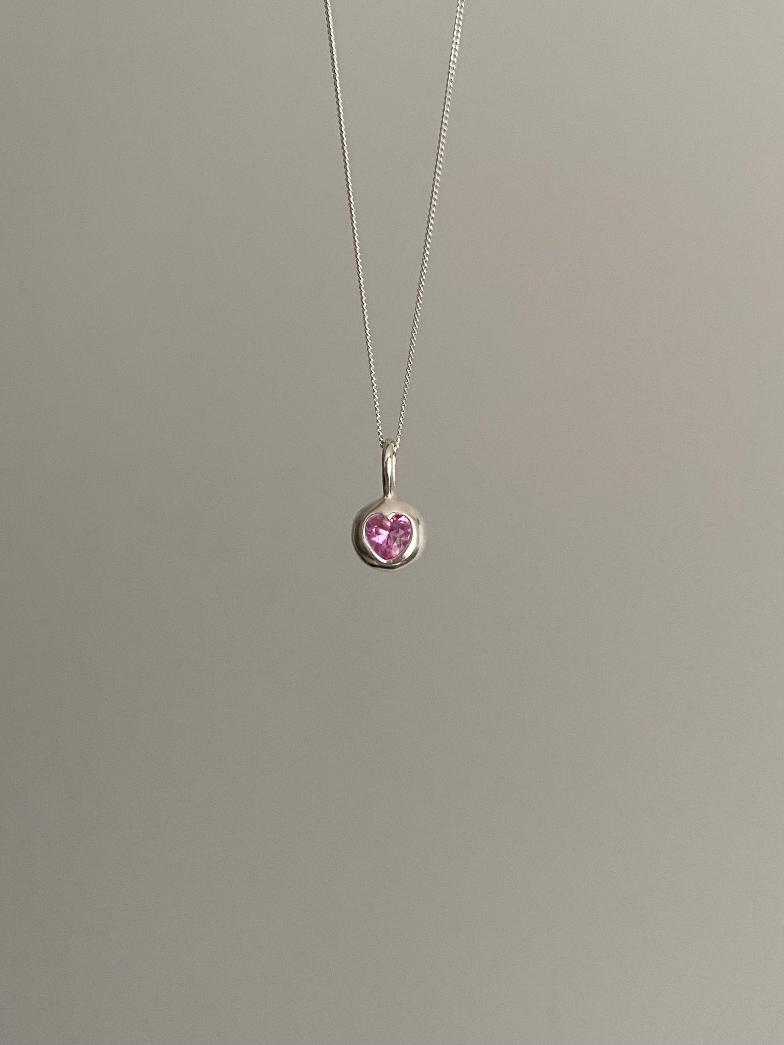 sterling silver bubble pendant set with a barbie pink lab grown sapphire stone